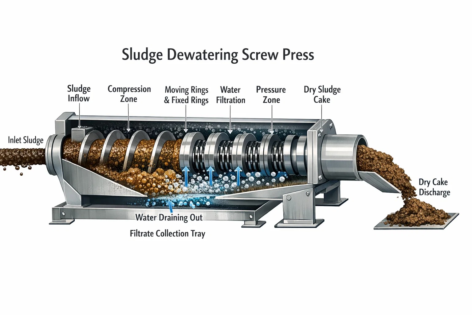 3. Pozadinske čvrste tvari: vijčana preša za odvodnjavanje mulja